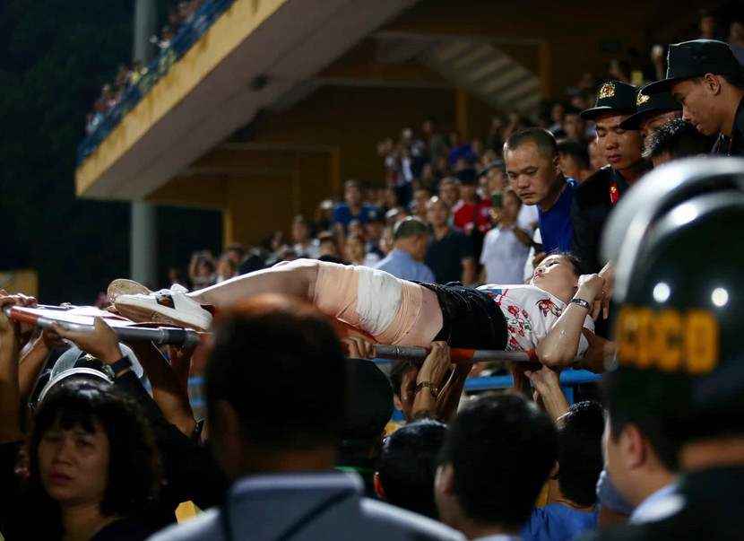 Trong một tình huống xấu xí như vậy, một cổ động viên nữ có tên Huyền Anh (sinh năm 1985) đã không may bị ném trúng chân, chảy nhiều máu và phải nhập viện khẩn cấp.
