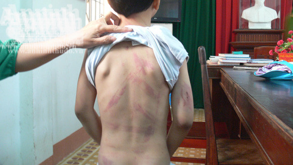 Lưng cháu B đầy vết bầm, tím sau trận đòn của cha
