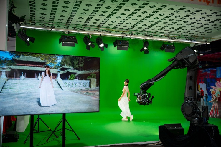Tại gian của Cục Điện ảnh, bạn có thể khoác lên mình bộ Việt phục để chụp hình 360 độ, hay thử sức trong phim trường số với phần nhập vai trong “Đào, phở và piano” - bộ phim chiến tranh, lịch sử từng gây sốt năm ngoái. Khán giả sẽ được quay thử một trích đoạn ngay trên phông xanh, với máy quay và hiệu ứng hiển thị trực tiếp trên màn hình.