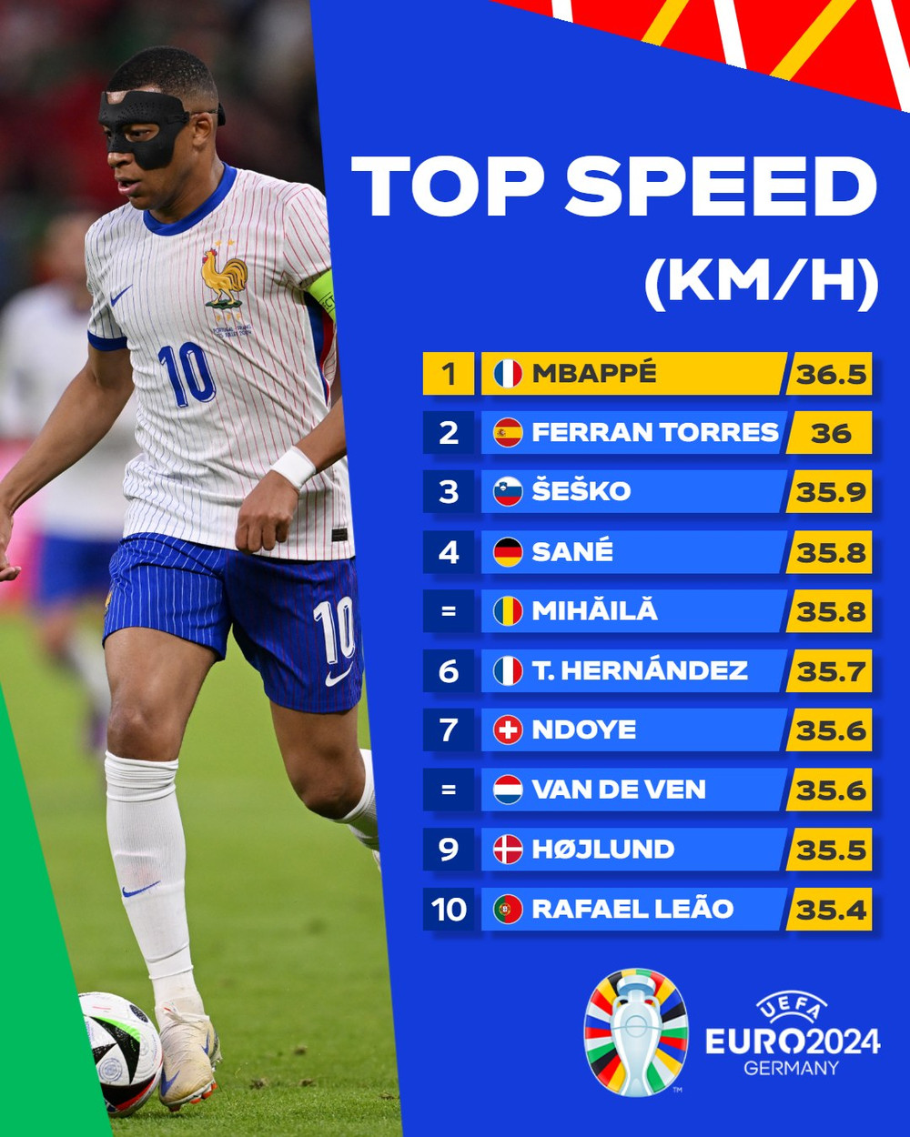 Chân dung 10 cầu thủ chạy nhanh nhất EURO 2024