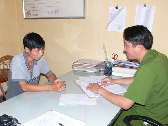 Đối tượng Lê Xuân Thuấn ra đầu thú tại cơ quan công an