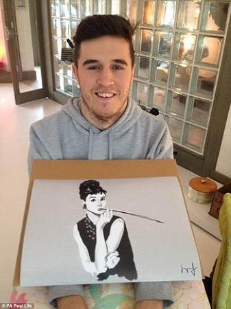 Henry với bức vẽ nữ diễn viên Audrey Hepburn của mình