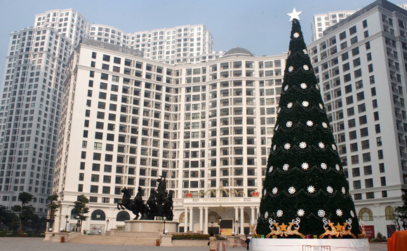 Trong không gian sang trọng giữa quảng trường khu đô thị mang đậm phong cách Châu Âu, khách mời còn được đón Noel sớm khi chiêm ngưỡng cây thông Giáng sinh hoành tráng nhất từ trước đến nay. Với chiều cao kỉ lục 32,5 m, nặng hơn 5 tấn, được trang hoàng gần 600 bóng đèn led với một ngôi sao lấp lánh ở trên đỉnh cùng hàng ngàn phụ kiện trang trí, cây thông này sẽ được Tổ chức Kỷ lục Việt Nam trao chứng nhận là cây thông Giáng sinh cao nhất Việt Nam vào chính giữa đêm tiệc. Điểm nhấn của buổi lễ là giây phút “thắp sáng” cây thông khi từ sân khấu, pháo điện mang nguồn ánh sáng lan tỏa khắp cây thông khổng lồ, mang không khí Giáng sinh rộn ràng, ấm áp và lộng lẫy đến với tất cả mọi người.