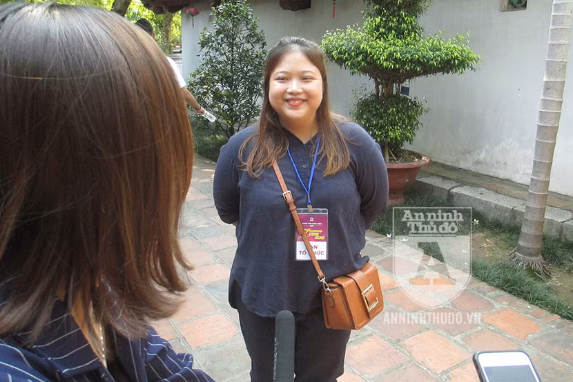 Chị Nguyễn Quỳnh Trang - đại diện BTC - vui vẻ chia sẻ về thành công của sự kiện