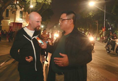 Phóng viên ANTĐ gặp gỡ du khách nước ngoài để giới thiệu về Thủ đô Hà Nội trong đêm giao thừa xuân Đinh Dậu 2017