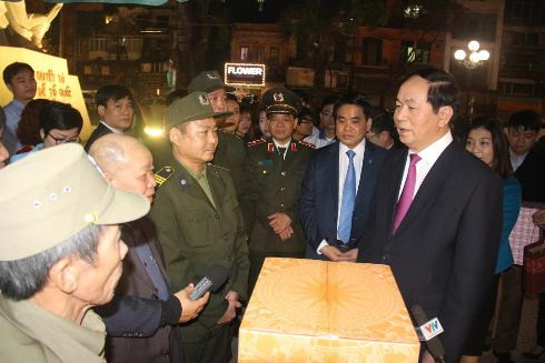 Chủ tịch nước Trần Đại Quang thăm, chúc Tết chốt bảo vệ Tổ dân phố số 5, phường Lý Thái Tổ, quận Hoàn Kiếm
