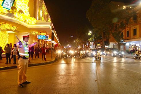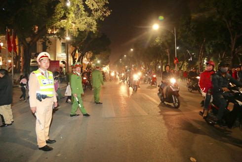 Đại tá Đào Vịnh Thắng, Trưởng Phòng CSGT đường bộ, đường sắt CATP Hà Nội cho biết: “Đêm giao thừa năm nay không bắn pháo hoa, nhưng ở khu vực trung tâm thành phố và một số địa điểm công cộng khác ở các khu vực ngoại thành vẫn tập trung đông bà con du xuân đón chào năm mới. Lực lượng CSGT đã bố trí 100% quân số, ứng trực tại các chốt để phân luồng, hướng dẫn mọi người dân đi lại an toàn trong đêm giao thừa. Bên cạnh đó, lực lượng CSGT phối hợp với các lực lượng khác của CATP Hà Nội triển khai các biện pháp phòng chống đua xe trái phép, gây rối trật tự công cộng”.
