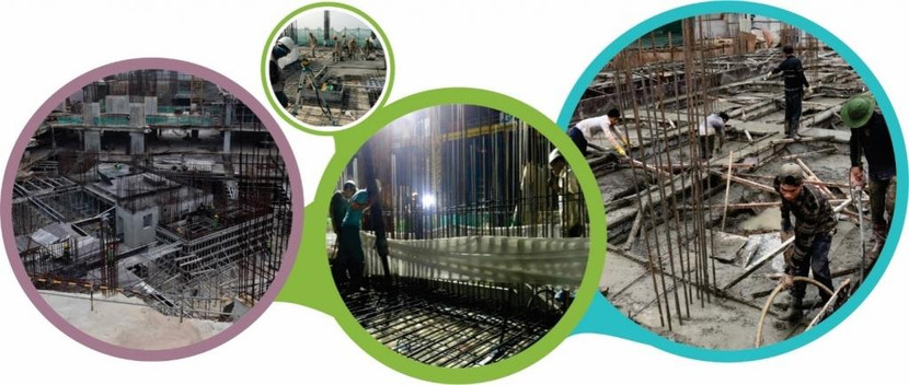 Thép được gia công tại xưởng gia công tại công trường đảm bảo về chủng loại, kích thước, chất lượng, số lượng được lắp ráp đúng qui trình qui phạm (TCVN4453 -1995 và TCXD 227-1999) neo buộc chắc chắn bằng dây thép 1 ly, đủ và gọn.