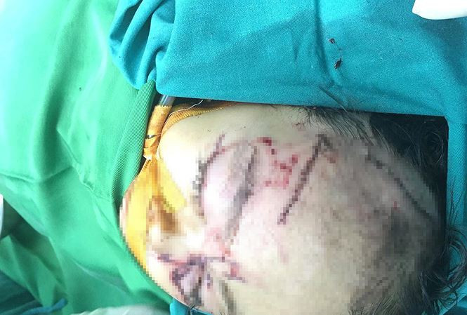 Tuy nhiên, do vết thương quá nặng nên sau khi sơ cứu, các bác sỹ đã chuyển cháu xuống bệnh viện Sản – Nhi Nghệ An điều trị. 18h50’ chiều cùng ngày, cháu Y. được đưa vào bệnh viện trong tình trạng bị nhiều vết thương ở quanh mắt trái sâu, mất hết tổ chức. Vết thương trán sâu sát xương, nhiều vết thương khác ở đầu và mi mắt phải...