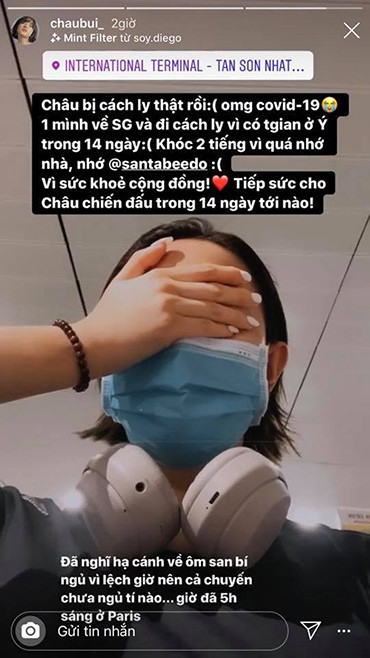 Trên trang cá nhân, Châu Bùi thông báo mình chính thức bị cách ly tại khu tập trung 14 ngày vì đã đến Ý trong thời gian vừa qua.