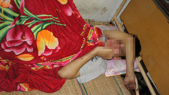 Nghi chuyện không hay, anh Tuấn lên mở cửa phòng thì phát hiện cháu trai bị nhốt bên trong với nhiều vết thương tích trên mặt, người có dấu máu. Hỏi nguyên do nhưng cháu bé không thể trả lời do bị câm. Sự việc nhanh chóng được báo lên chính quyền địa phương. Nạn nhân xác định là cháu Nguyễn Anh Tú (14 tuổi) trú xóm 17, xã Nghi Phú, TP Vinh. Ngay khi thấy cháu bé bị thương, khách sạn và các cơ quan chức năng đã khẩn trương đưa cháu đi bệnh viện cấp cứu. Bác sĩ Nguyễn Văn Việt - Trực khoa Thần kinh cột sống Bệnh viện Hữu nghị đa khoa Nghệ An cho biết, cháu Tú nhập viện lúc 16h55 ngày 16-9 với nhiều vết thương khắp cơ thể, tinh thần hoảng loạn. Qua thăm khám, điều trị, xác định nạn nhân bị loét hậu môn, dương vật tụ máu. Trên mặt, ngực và tay chân người nhiều nơi lở toác, gãy 2 răng cửa, miệng bị sưng, tóc và lông mày bị đốt cháy sém. Tai bị kẻ gây án cắn bầm. Có dấu hiệu như bị lạm dục tình dục.