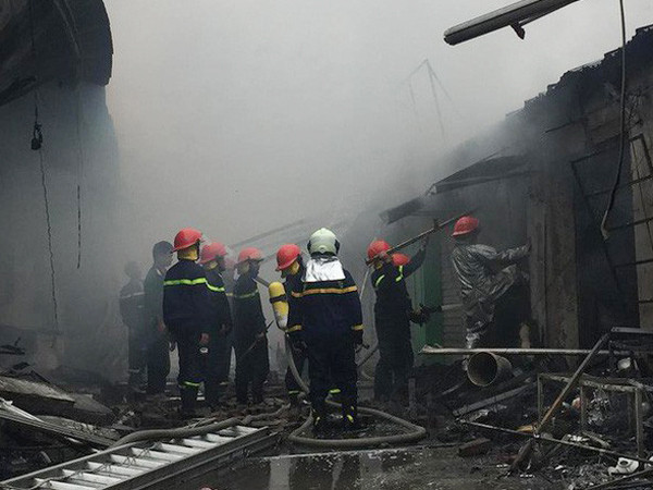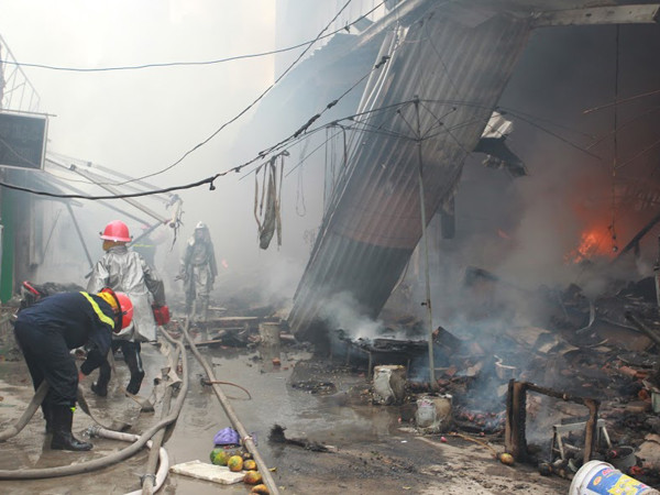 Lực lượng cứu hỏa khống chế đám cháy sau hơn 1 giờ đồng hồ tại vụ cháy chợ Quang
