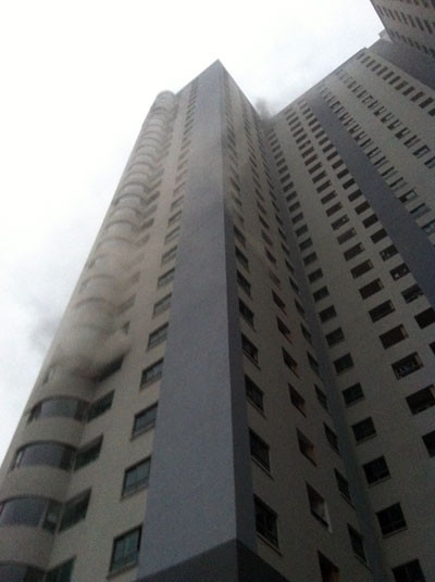 Khói đen bốc ra từ lưng chừng tòa chung cư