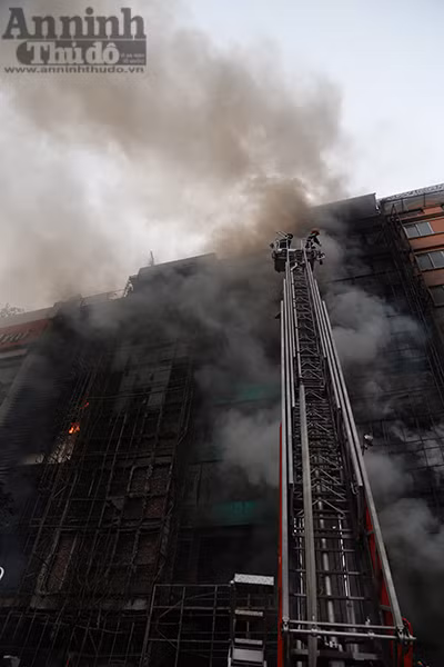 Khói mù mịt bốc ra bao trùm xe thang trên cao
