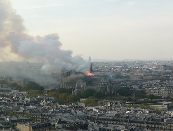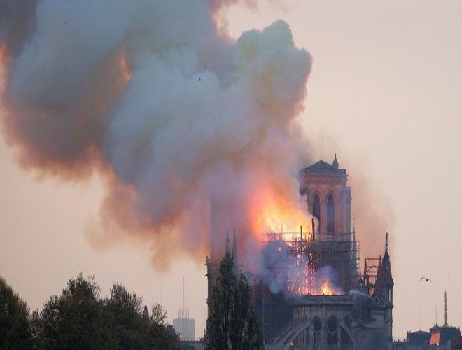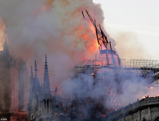 ANTD.VN -Rạng sáng 16-4 theo giờ Việt Nam, Nhà thờ Đức bà Paris nổi tiếng ở thủ đô Paris của Pháp đã bốc cháy dữ dội. Sập đỉnh tháp, toàn bộ mái bị thiêu rụi. Một trong những tháp chuông của nhà thờ đã bị sụp dưới sức nóng khủng khiếp.