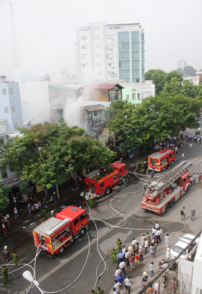 Khi tiếp nhận tin báo, Phòng Cảnh sát PCCC quận 1 đã huy động 5 xe chuyên dụng gần 40 cán bộ chiến sĩ đến hiện trường. Phải mất 1h sau thì lực lượng chuyên nghiệp mới dập tắt được ngọn lửa.