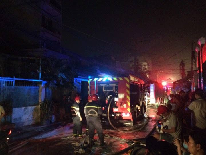 Ngọn lửa cháy nhanh, lan rộng, bốc mùi khét lẹt. Nhận tin báo, lực lượng PCCC quận Bình Tân điều động nhiều xe chữa cháy cùng hàng chục cán bộ chiến sĩ đến hiện trường, triển khai phương án dập lửa.