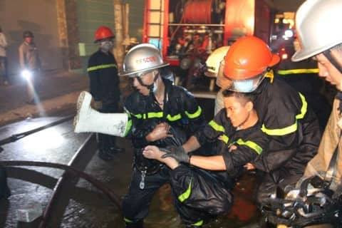 Một chiến sĩ PCCC bị thương khi tham gia chữa cháy, chiến sĩ này được đồng đội đưa ra ngoài sơ cứu rồi chuyển đi bệnh viện cấp cứu.