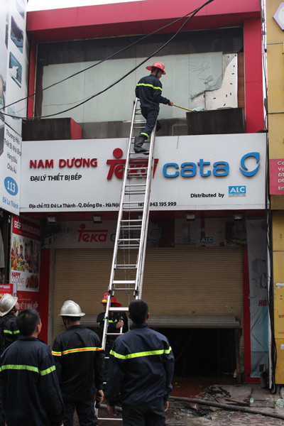 Do ngôi nhà đóng kín cửa cuốn nên lực lượng Cảnh sát PCCC đã phải dùng phương tiện chuyên dụng bẩy phá cửa để phun nước vào đám lửa. Tuy nhiên, do thời gian phát hiện muộn nên ngọn lửa cháy từ trong tầng hầm tầng 1 để xe của ngôi nhà số 113 phố Đê la Thành đã cháy lan sang ngôi nhà phía sau nằm về mặt phố Ô Chợ Dừa.