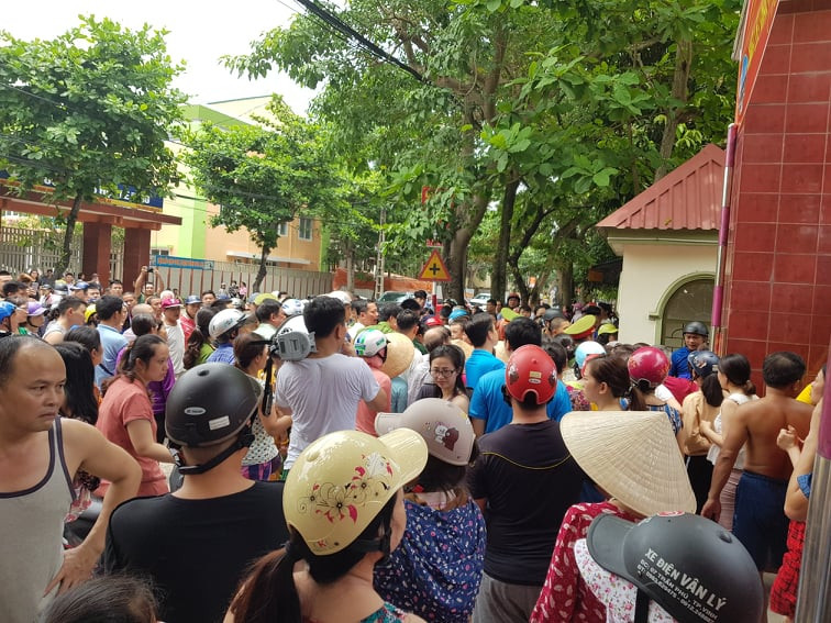 Rất đông phụ huynh tập trung ở trường sau sự cố