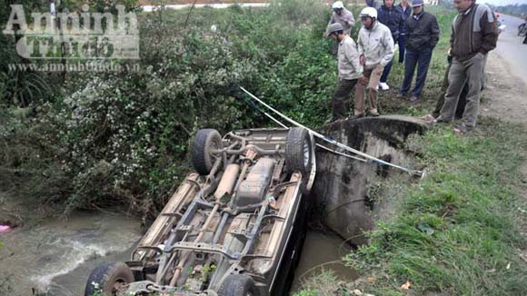 Chiếc xe ô tô 7 chỗ hiệu Ford Everest biển kiểm soát 76M-2714, do tài xế Võ Thành Tân, quê huyện Tư Nghĩa điều khiển. Theo tài xế Võ Thành Tân cho biết, nguyên nhân tai nạn là do khi vượt qua một xe ô tô chạy cùng chiều, bất ngờ một xe ô tô chạy ngược chiều xuất hiện, anh đành láng xe vào lề để tránh, do xe chạy nhanh nên không kịp xử lý và rơi xuống kênh. Rất may, anh chỉ bị thương nhẹ.