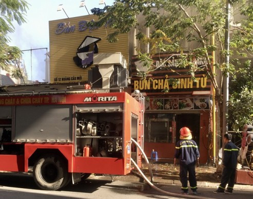 Vào thời điểm trên, người dân phát hiện đám cháy ở trên tầng 2 của cửa hàng bún chả. Ngọn lửa bốc cao dữ dội, cộng với tiết trời hanh khô, khu vực xảy cháy nhiều chất dẫn, dễ cháy nên chỉ sau ít phút lửa khói đã lan xuống tầng 1.