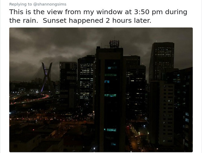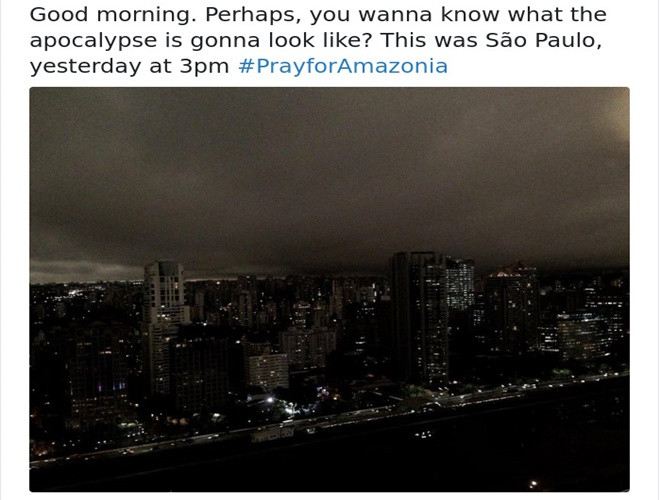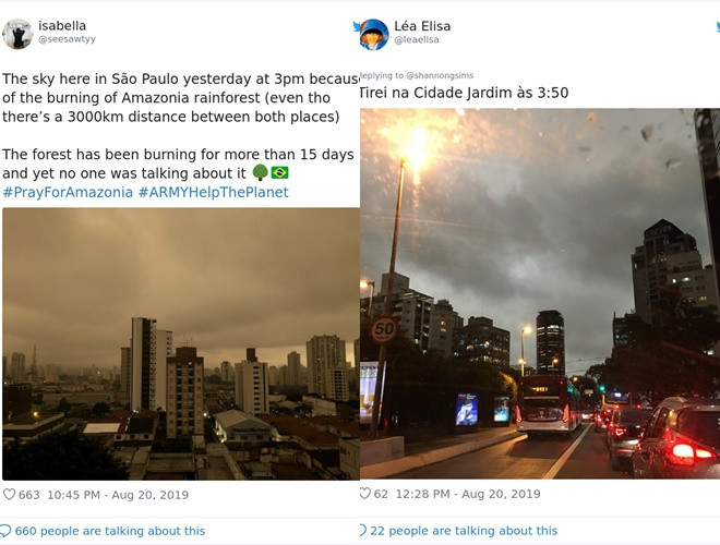 ANTD.VN - Dù cách xa đến hơn 2.700km nhưng bầu trời ở thành phố Sao Paulo, Brazil cũng ngập trong khói đen và bụi tro từ các vụ cháy rừng mưa Amazon. Thảm họa cháy rừng còn biến nước mưa trong khu vực này có màu đen như nhựa đường, ảnh hưởng nghiêm trọng đến cuộc sống của hàng triệu người.