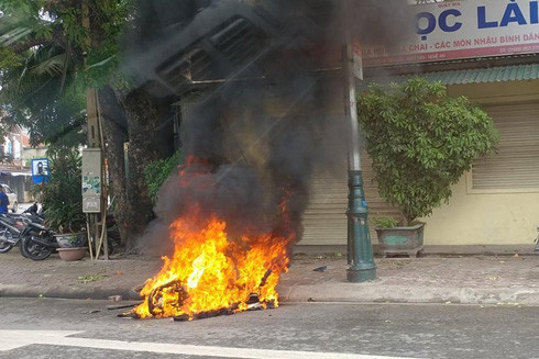 Không tìm được Long, Mạnh và Giàu châm lửa đốt chiếc xe Wave alpha của Long.