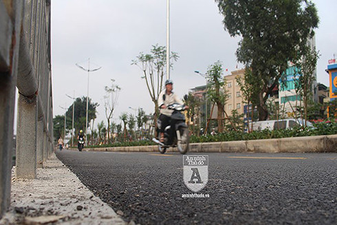 Đặc biệt hơn, ngay cạnh phần đường này, một làn đường nhỏ dành riêng cho người đi bộ và xe đạp di chuyển cũng vừa thành hình, giúp ngăn cách với đường lớn gồm nhiều ô tô, xe máy.