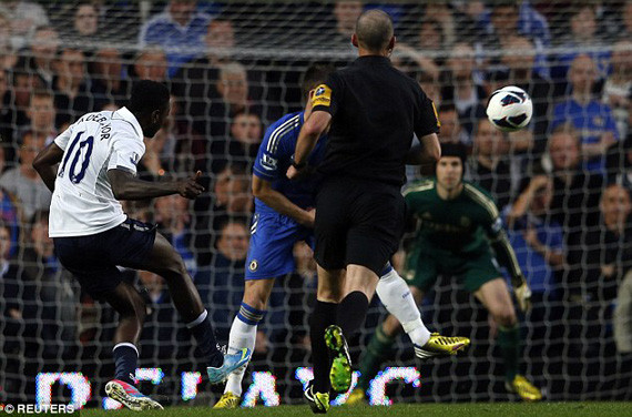 Không dễ dàng bị khuất phục, các cầu thủ Tottenham đã đẩy cao đội hình tìm kiếm bàn thắng. Phút 26 trong một đợt phản công nhanh, nhận đường chuyền của Holtby, Adebayor dẫn bóng xâm nhập vòng cấm rồi bình tĩnh thực hiện pha cứa lòng vào góc cao hạ gục thủ thành Petr Cech gỡ hòa 1-1.