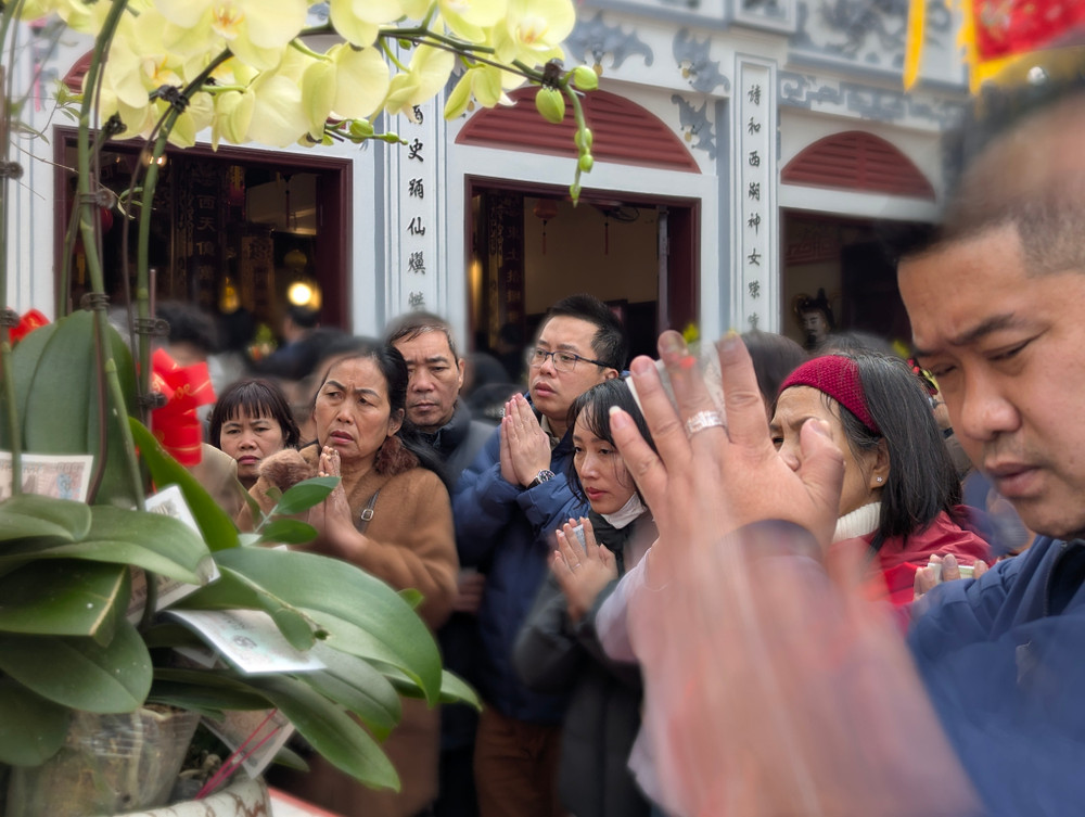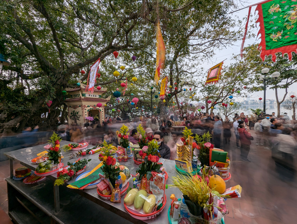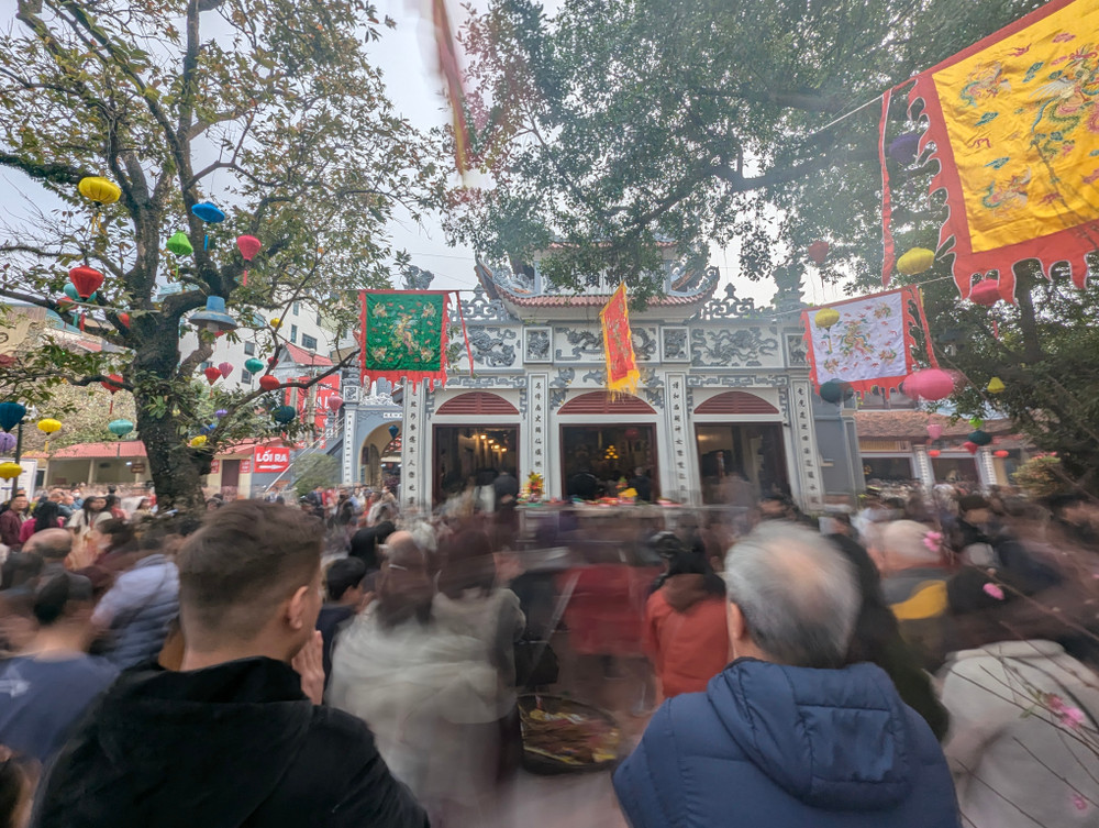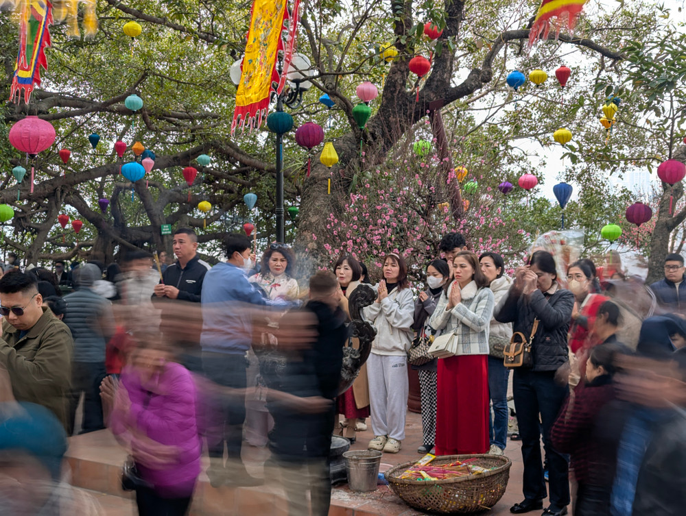 Chen chân đi lễ cầu may ngày mùng hai Tết ở Phủ Tây Hồ, tiền lẻ vẫn rải khắp nơi...