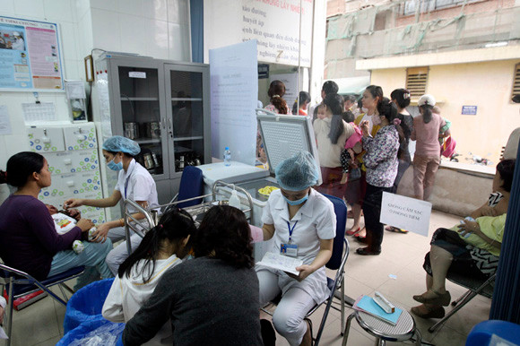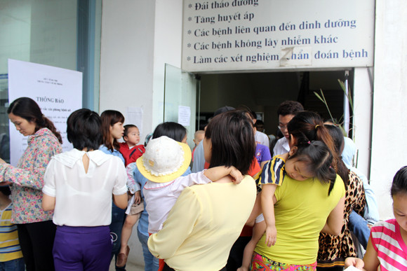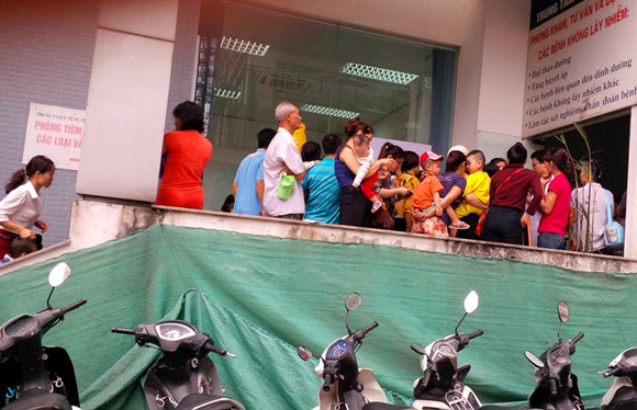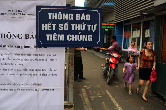 Tại điểm tiêm vắc-xin phòng bệnh sởi- Trung tâm y tế dự phòng Hà Nội (TTYTDP- số 70 Nguyễn Chí Thanh, Ba Đình, Hà Nội) chúng tôi ghi nhận, nhiều bà mẹ đã phải ra về sau khi đưa con đến và chờ đợi hàng giờ nhưng không được tiêm. Lý do được các nhân viên và y tá ở đây đưa ra là hết thuốc.