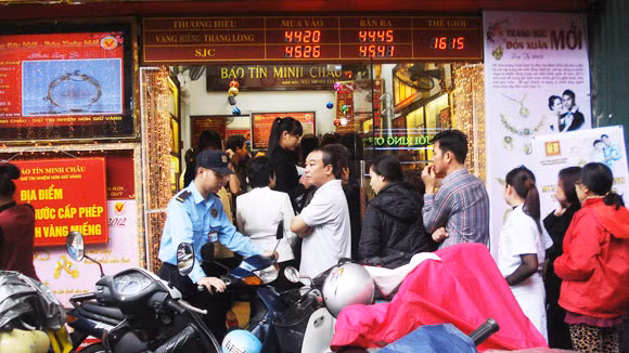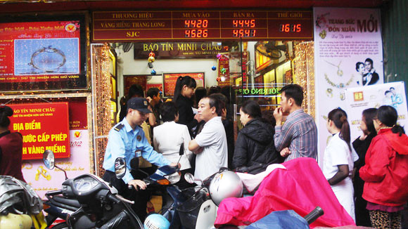 Theo Trung tâm Nghiên cứu và khảo sát thị trường vàng Bảo Tín Minh Châu, tại các cửa hàng vàng trên phố Trần Nhân Tông lượng khách đến giao dịch chật kín. Khách mua vào là chủ yếu và mua với số lượng vừa phải để cầu may đầu năm.