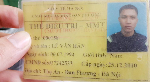 Lê Văn Hân có tiền sự cai nghiện bắt buộc đang được điều trị bằng Methadone tại cơ sở điều trị Methadone Đan Phượng