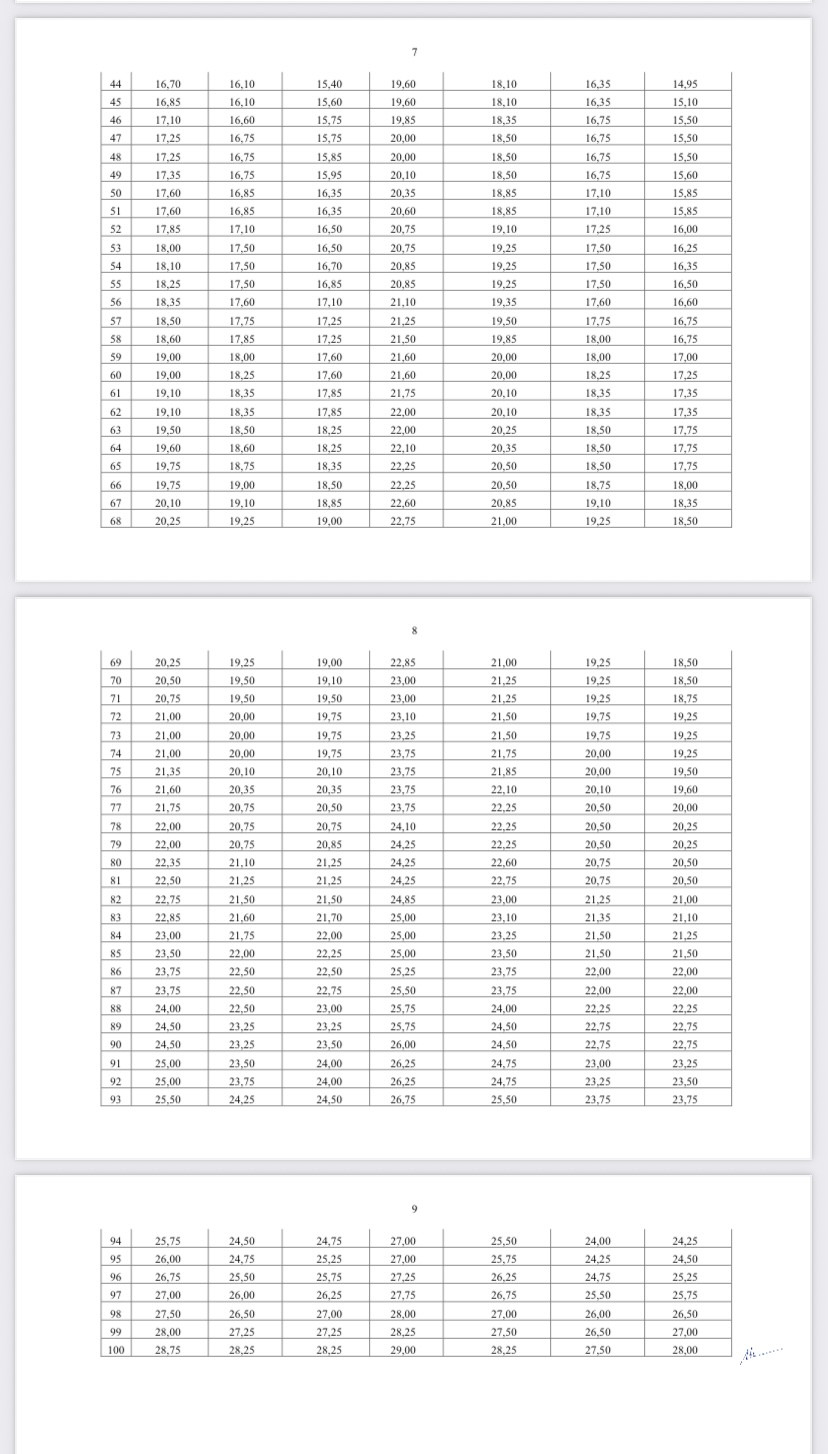 Cụ thể bảng bách phân vị 7 tổ hợp như sau: