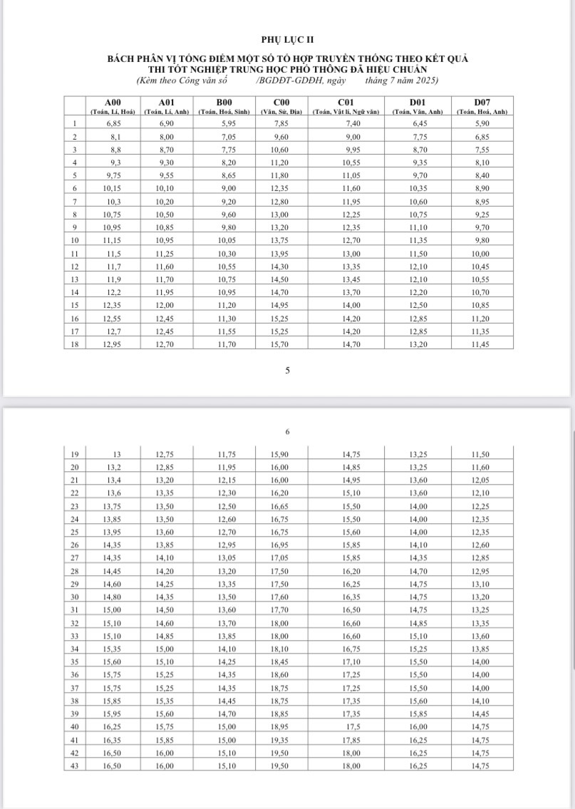 Ngày 22/7, Bộ GD-ĐT đã công bố bách phân vị 7 tổ hợp xét tuyển phổ biến từ kết quả thi tốt nghiệp THPT 2025.