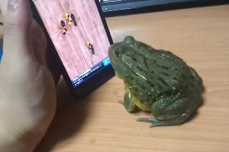 Đoạn video quay lại cảnh người đàn ông cười ngặt nghẽo trước cảnh con ếch của anh ta đang ra sức cố bắt lũ con trùng… trong game trên điện thoại cảm ứng. Clip thu hút 675.000 lượt view chỉ trong một vài ngày.