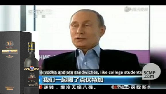 Tổng thống Nga đã nói đùa với một phóng viên CCTV: “Tôi đã chuẩn bị sẵn rượu Mao Đài cho bạn”, khi đó, các nhà báo tại buổi phỏng vấn được người phục vụ chuẩn bị cho mỗi người 1 tách trà. Sau đó, CCTV tiếp tục trích dẫn câu Putin khen ngợi Mao Đài trong cuộc phỏng vấn. “Ông nói Mao Đài là tuyệt vời, và quả thực rượu Trung Quốc rất mạnh".