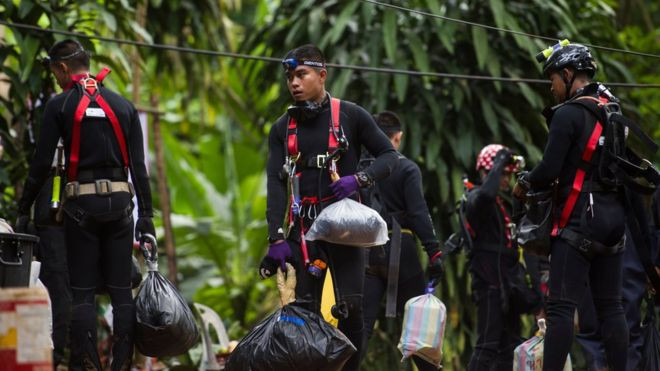 Chiến dịch giải cứu 13 nạn nhân mắc kẹt bên trong hang Tham Luang đã được bắt đầu vào hôm 8-7, có tất cả 4 thành viên đội bóng được giải cứu khỏi hang an toàn. Lực lượng cứu hộ đã phải tạm dừng công việc sau khi đưa được 4 nạn nhân ra do sự thiếu hụt không khí trong các bình oxy. Sau khoảng 10 tiếng chuẩn bị, công cuộc giải cứu đã được tiếp tục vào sáng 9-7.