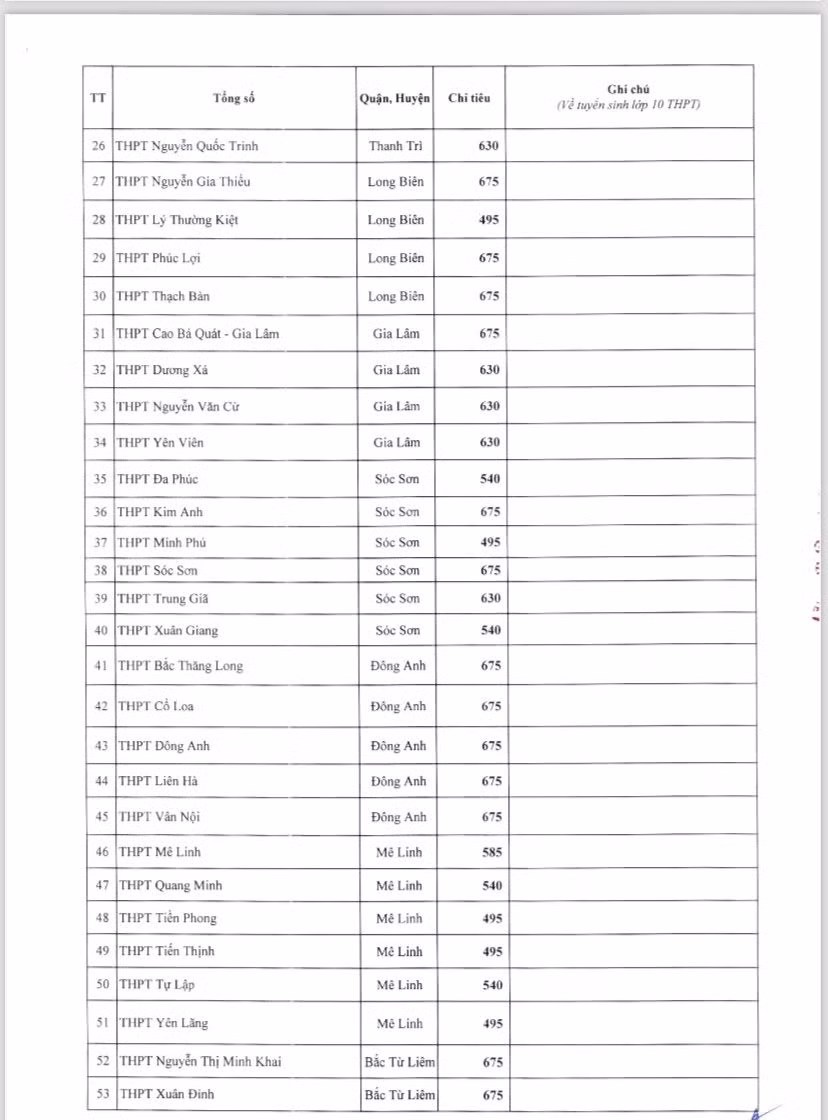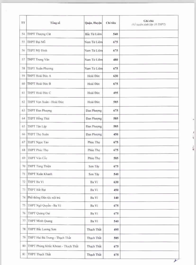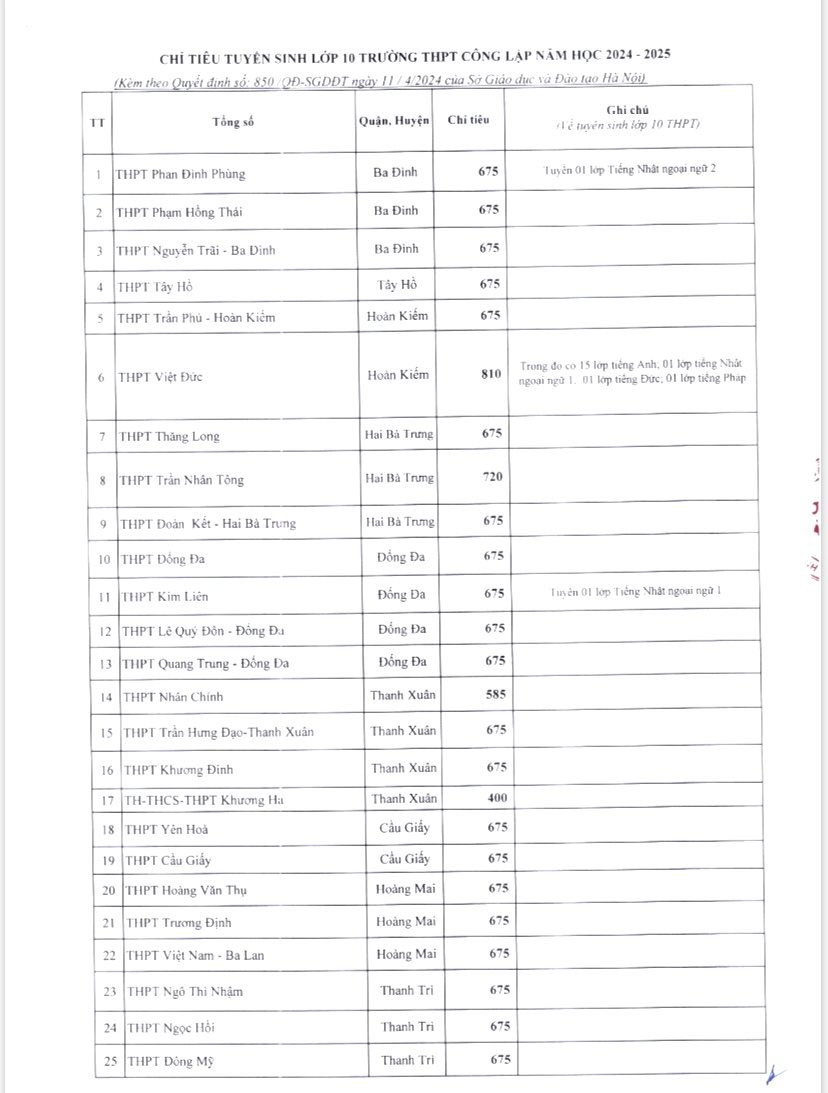 Sở GD-ĐT Hà Nội vừa công bố chi tiết chỉ tiêu vào lớp 10 các trường THPT công lập trên địa bàn thành phố.