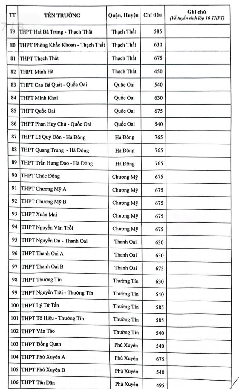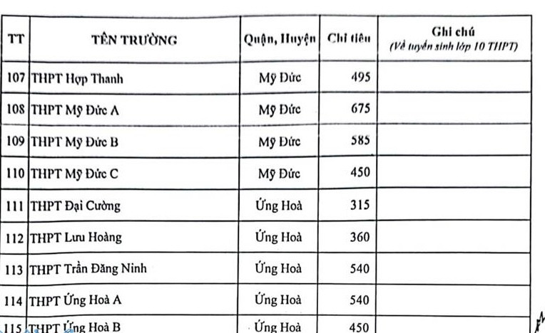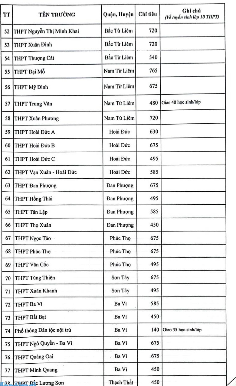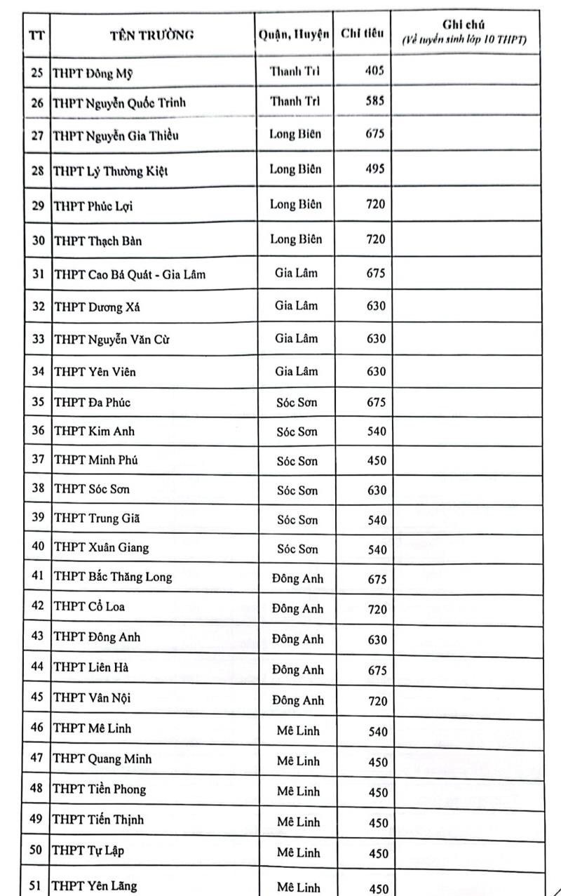 Cụ thể chỉ tiêu các trường THPT công lập như sau: