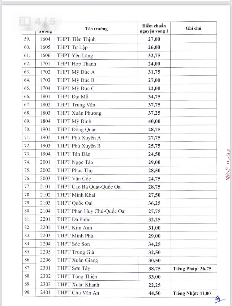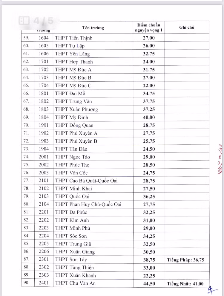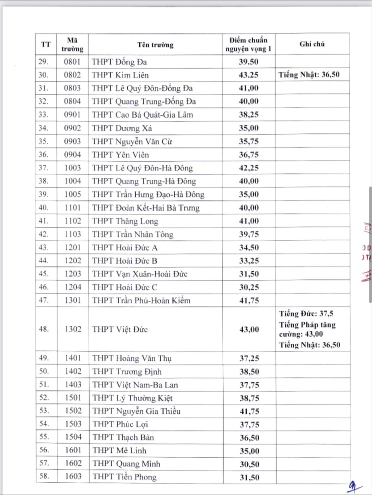 Điểm chuẩn cụ thể các trường THPT công lập Hà Nội như sau: