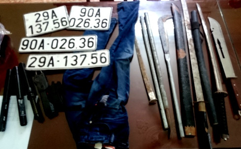 Hung khí và biển số xe ô tô giả được Phương cùng đồng bọn sử dụng gây án