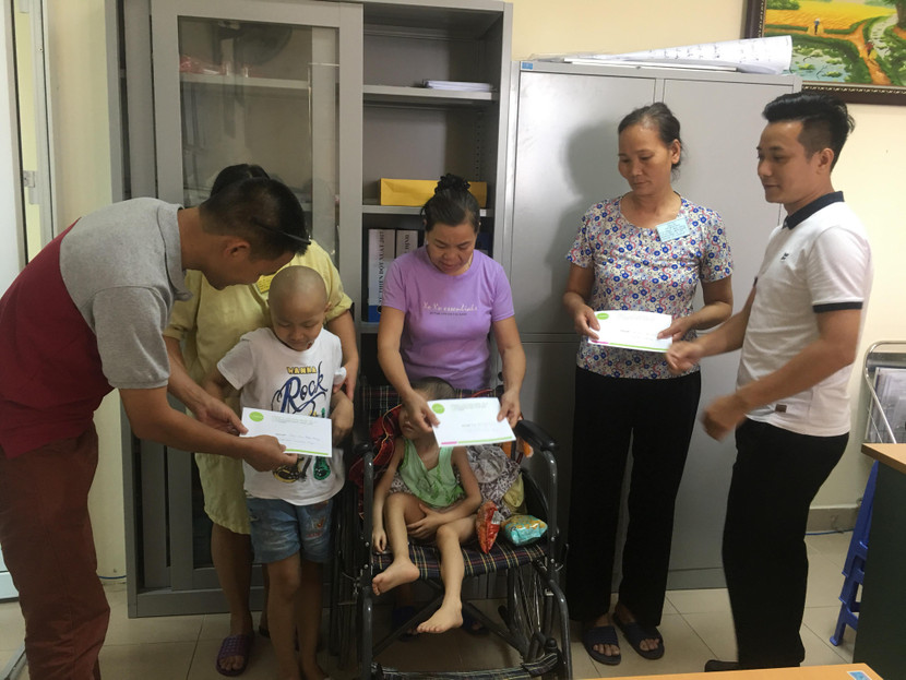 3 bệnh nhi ung thư được nhận hỗ trợ lần này đều có hoàn cảnh hết sức khó khăn. Bé Bùi Lê Gia Bảo, 7 tuổi, quê ở Tuyên Quang, được phát hiện mắc bệnh ung thư xương từ tháng 6-2016. Tháng 73-2017, bé được đưa xuống viện K điều trị, đến nay đã truyền 17 đợt thuốc. Mỗi đợt như thế, dù được BHYT thanh toán 80%, gia đình bé Gia Bảo vẫn phải nộp 5 triệu đồng tiền thuốc. Gia cảnh đã khó khăn cảng khó khăn hơn khi bố của bé Gia Bảo được phát hiện mắc bệnh viêm gan C độ I, phải điều trị hết 19 triệu đồng. Đã thế, gia đình còn thêm gánh nặng chăm sóc bà ngoại của bé Gia Bảo đau yếu sau cơn tại biến.