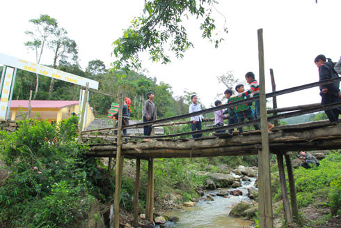 Gần 2 giờ đồng hồ, chiếc xe cũng đưa chúng tôi vào đến điểm lớp Dần Thàng, đứng bên chiếc cầu tre bên suối, hàng chục học sinh cùng đồng bào reo hò vẫy tay khiến ai nấy trong đoàn vui mừng đến bật khóc. Chẳng ai bảo ai, các thành viên trong đoàn cùng người dân trong bản và các em học sinh đứng thành hàng ngang từ xe lần lượt chuyền tay nhau những túi quà nặng trĩu…