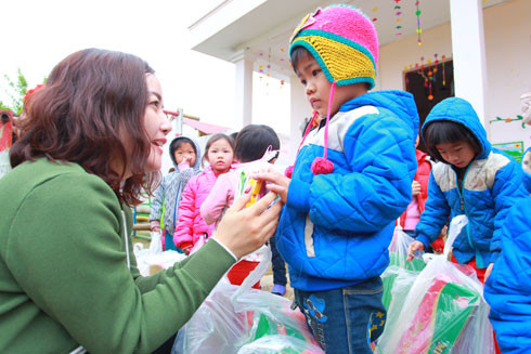 Chị Phùng Thị Náy, đang có con theo học lớp 5 tuổi ở đây xúc động khi cầm trên tay túi quà, chị chia sẻ “Thấy có ủng, có mì tôm như thế này là mình thích lắm. Con bé Tuyết ao ước mãi có một đôi ủng để có thể vượt qua con đường đầy bùn từ bản đến trường từ lâu lắm rồi…”.