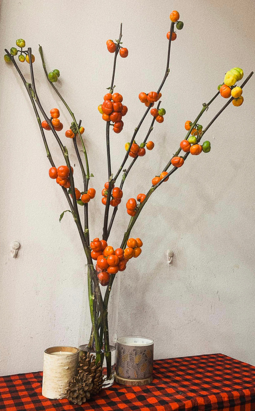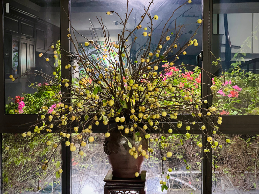 Chiêm ngưỡng những cành, quả được trang trí rất bắt mắt trong nhà