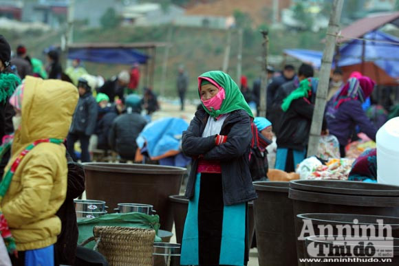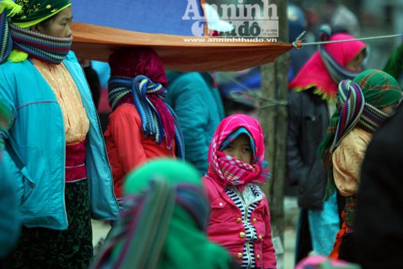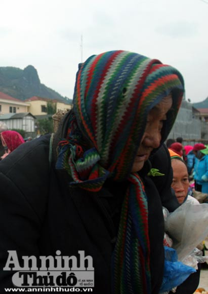 Khăn len là thứ không thể thiếu trên đầu người Mông nhất là mùa đông lạnh giá.
