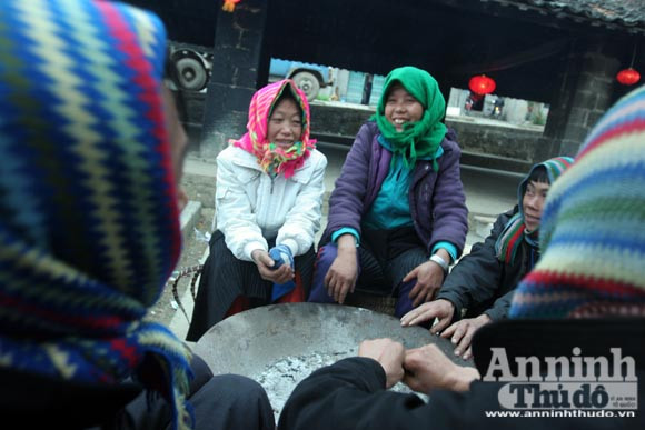 Lấy chảo thắng cố để đốt lửa sưởi ấm đợi chồng uống rượu trong phiên chợ