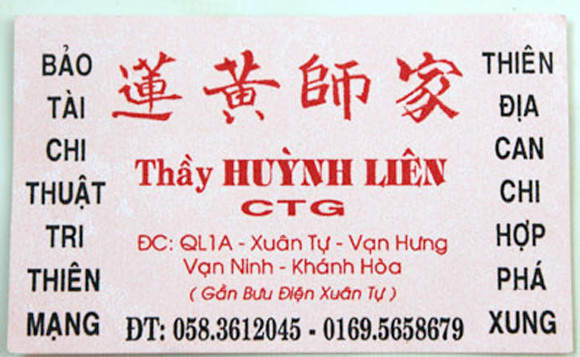 Số thầy Huỳnh Liên đã không ra gì, có ai ngờ bây giờ vì miếng ăn mà nhiều chiêm tinh gia Huỳnh Liên lại “tái sinh”. Hôm nọ, bà chị dâu tôi đi cúng bái ở đâu về bỗng nhiên thì thầm với vợ tôi về ông thầy tướng số phán như thần ở Khánh Hòa. Vợ tôi cũng bán tín bán nghi, đem chuyện kể lại cho tôi và đưa tấm các vi dít của thầy. Rành rành chữ Huỳnh Liên to tướng ở giữa, ở dưới là chữ CTG (ý là chiêm tinh gia), hai bên ngạo nghễ hai dòng chữ: Bảo toàn chi thuật tri thiên mạng, thiên hạ can chi hợp phá xung, phía trên mấy chữ Hán. Lại còn ghi rõ địa chỉ số nhà, số điện thoại. Bán tín bán nghi, có lẽ nào ông Huỳnh Liên năm nào chết đi nay sống lại. Vợ tôi còn nhất mực khẳng định, mấy cuốn sách tướng số để trong nhà bấy lâu nay là của ông này viết. Thế là chúng tôi quyết định đi tìm sự thật.
